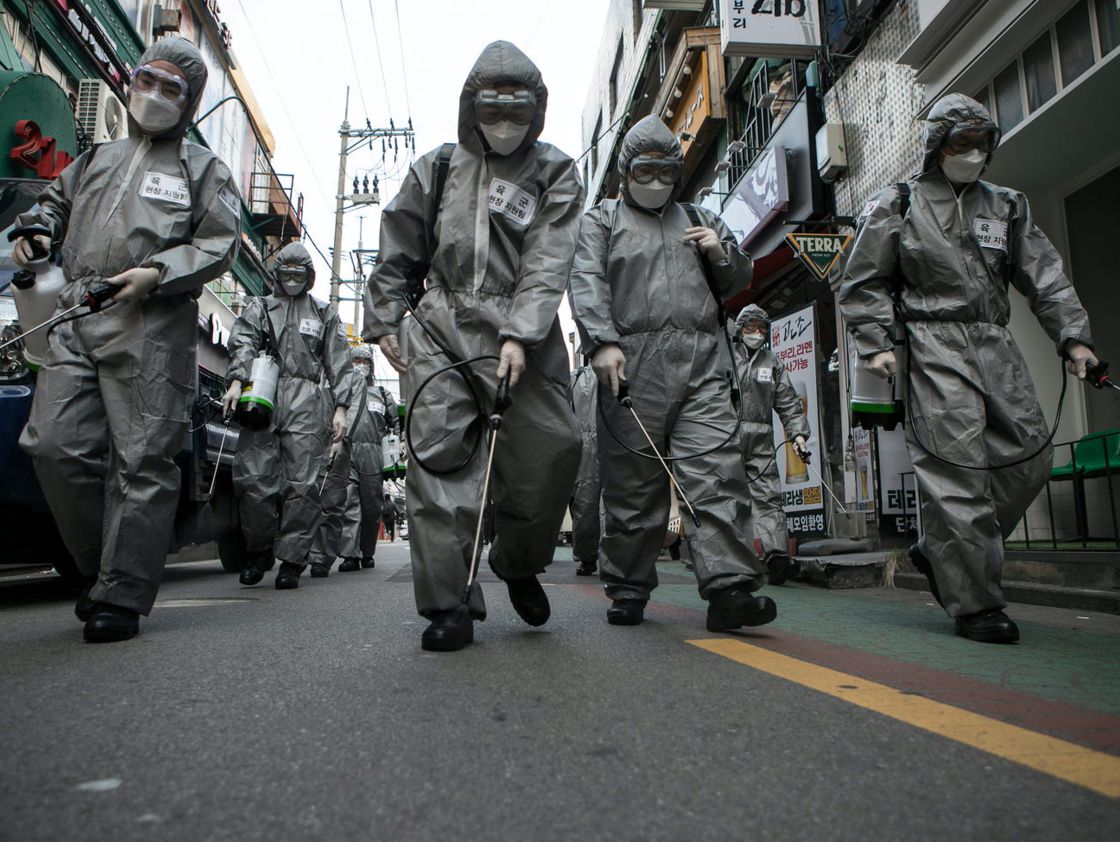 Ảnh: Các binh sĩ Hàn Quốc được lệnh khử trùng Seoul, Hàn Quốc, khi virus corona lây lan, ngày 4 tháng 3 năm 2020. Woohae Cho / Getty Images