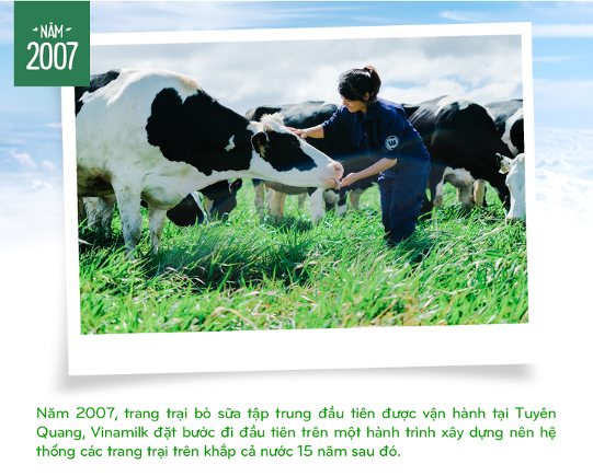 Xác định chủ động nguyên liệu sữa sẽ là chìa khóa để phát triển, ban lãnh đạo doanh nghiệp cũng bắt tay vào thực hiện chiến lược xây dựng nên những trang trại bò sữa tập trung với quy mô lớn và được định hướng theo các tiêu chuẩn của quốc tế.