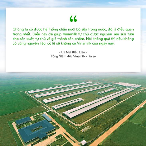 Với sự đầu tư của các doanh nghiệp sữa như Vinamilk trong 15 năm qua, đã xây dựng nên hệ thống 13 trang trại chuẩn quốc tế, góp phần chủ động vùng nguyên liệu giúp cung cấp hơn 1 triệu lít sữa tươi nguyên liệu mỗi ngày.