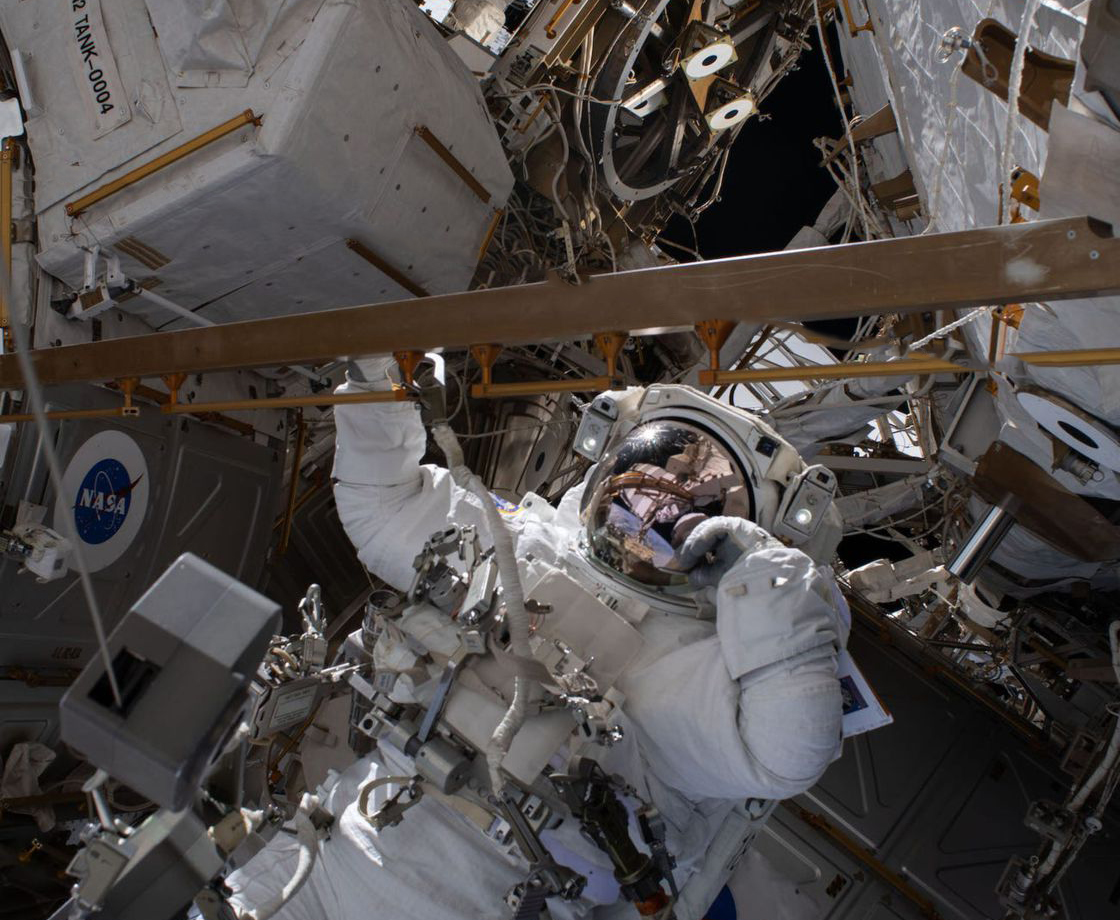Bob Behnken làm việc trong chuyến đi bộ ngoài không gian kéo dài sáu giờ để thay thế pin niken-hydro cũ bằng pin lithium-ion mới trên Trạm Vũ trụ Quốc tế, ngày 1 tháng 7 năm 2020.