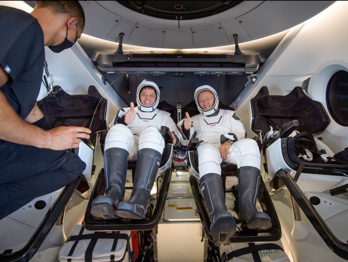 Hai phi hành gia NASA Doug Hurley và Bob Behnken, những người đã thực hiện một sứ mệnh kéo dài 63 ngày với tàu vũ trụ Crew Dragon của SpaceX, là những người đầu tiên đi vào quỹ đạo và quay trở lại Trái đất. Đây là lần đầu tiên một công ty tư nhân đưa con người vào vũ trụ.