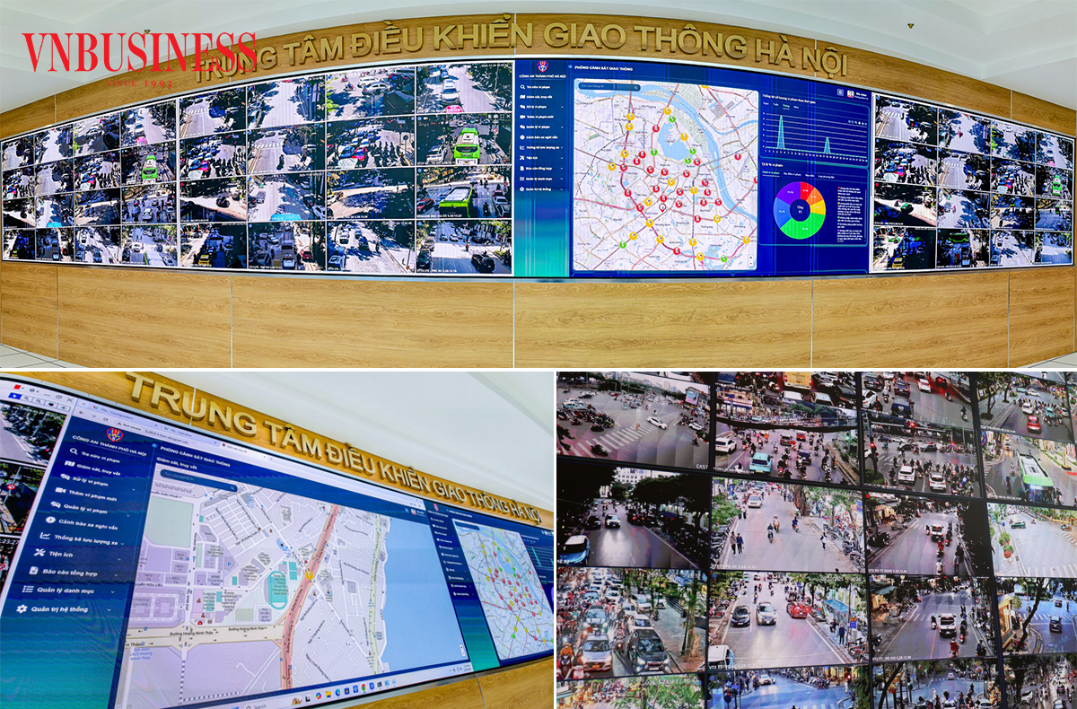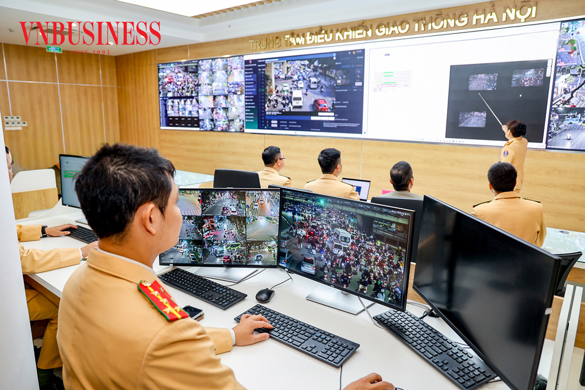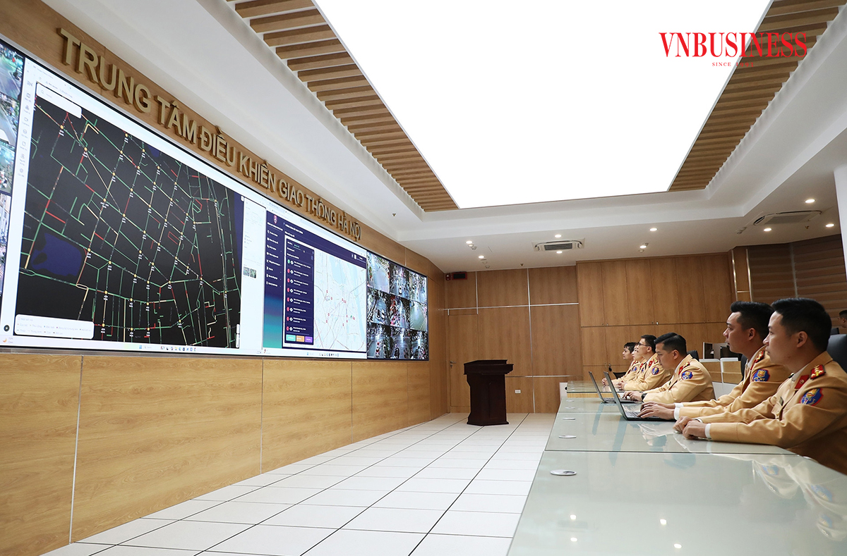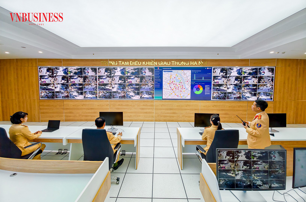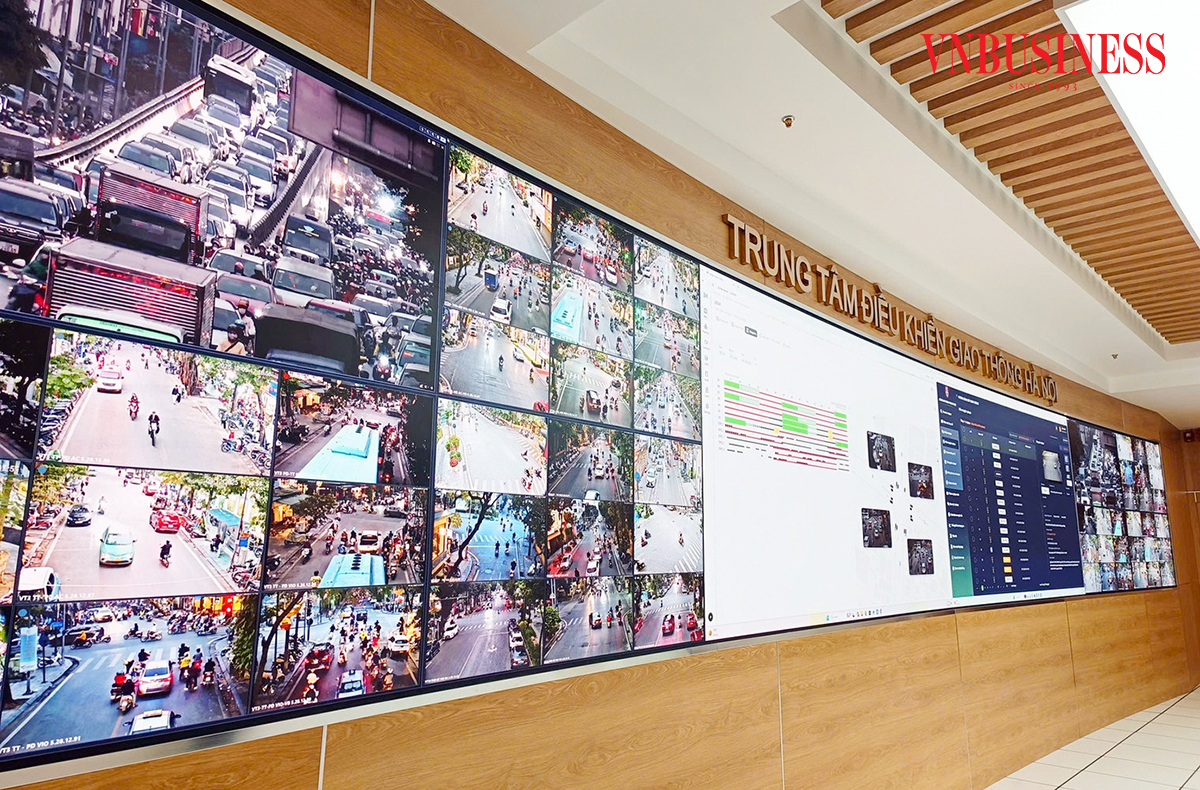 Trung tâm điều khiển giao thông Hà Nội là 'đầu não' của hệ thống gồm 1.837 camera các loại, được kết nối trực tiếp với 188 tủ điều khiển đèn tín hiệu giao thông ứng dụng AI.