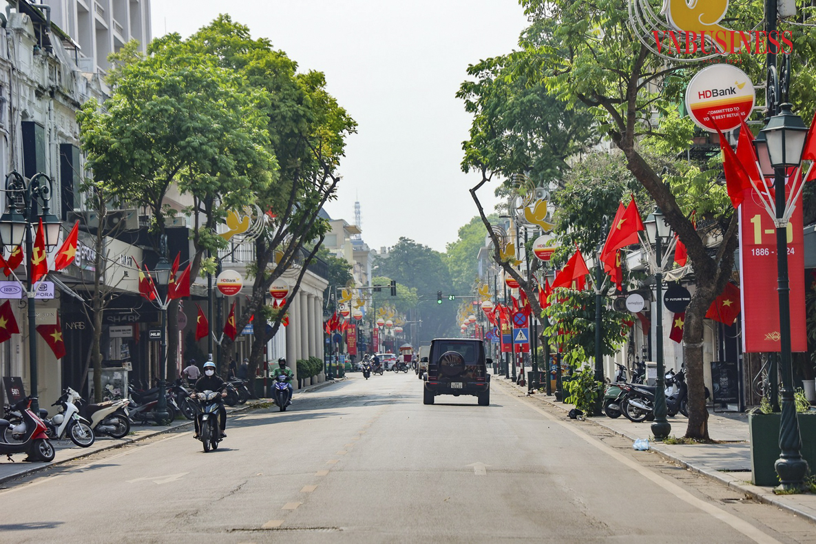 Những tuyến phố Hà Nội trở nên rực rỡ, sinh động hơn với sắc đỏ của băng rôn, khẩu hiệu, pano chào mừng ngày lễ lớn của dân tộc.