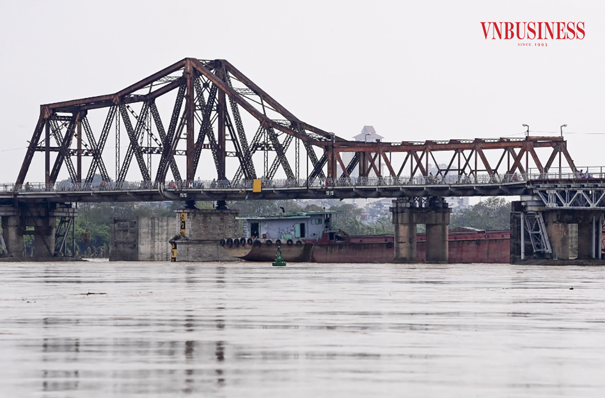 Các mố trụ chống va đập tại cầu Long Biên, hình ảnh này hiếm khi xuất hiện trong nhiều năm trở lại đây.