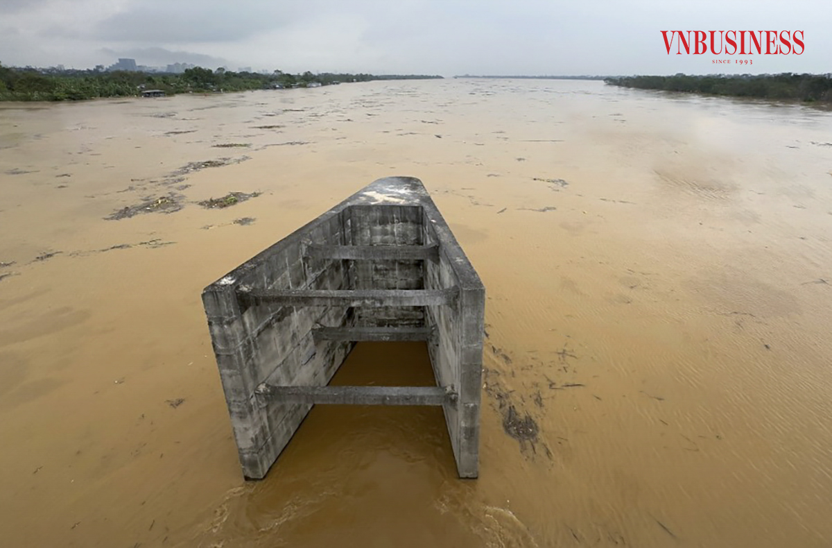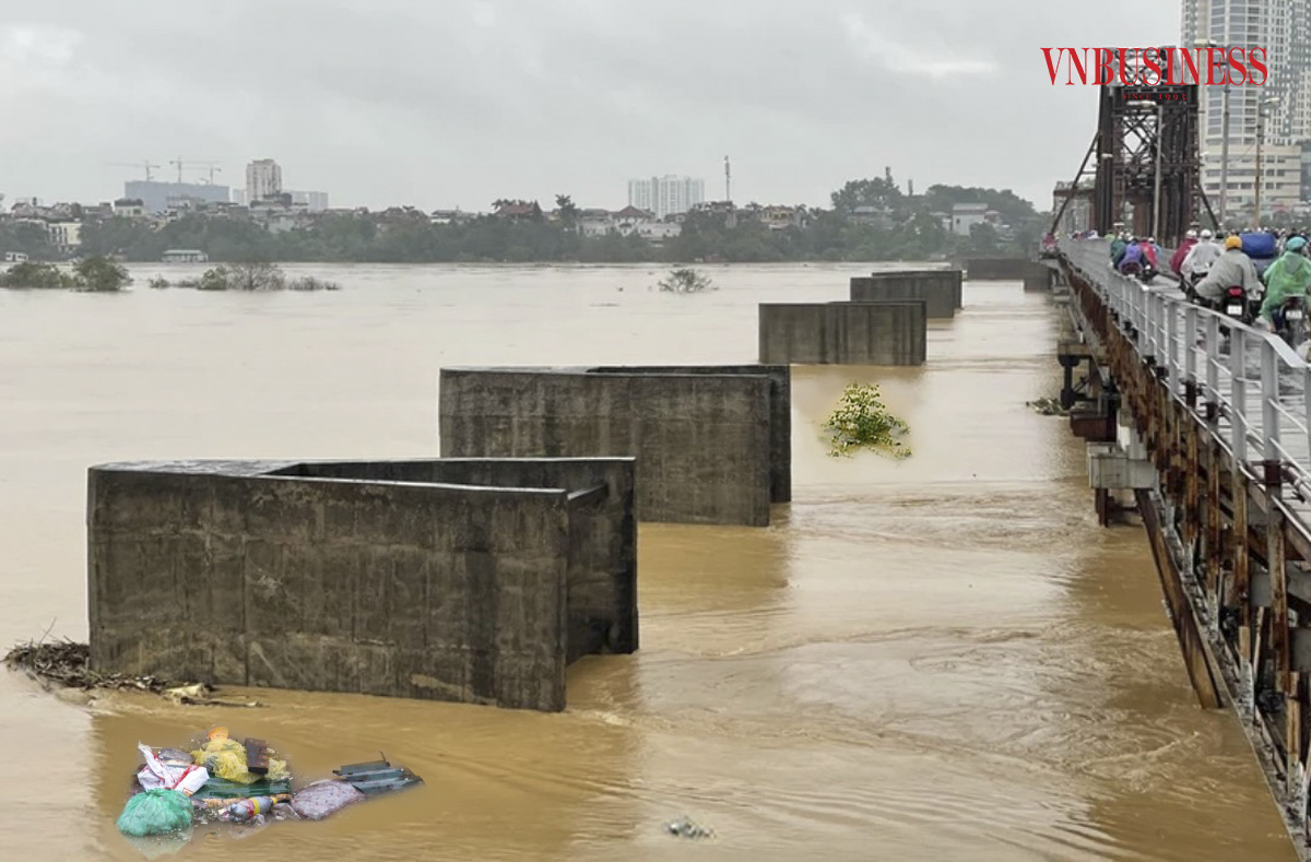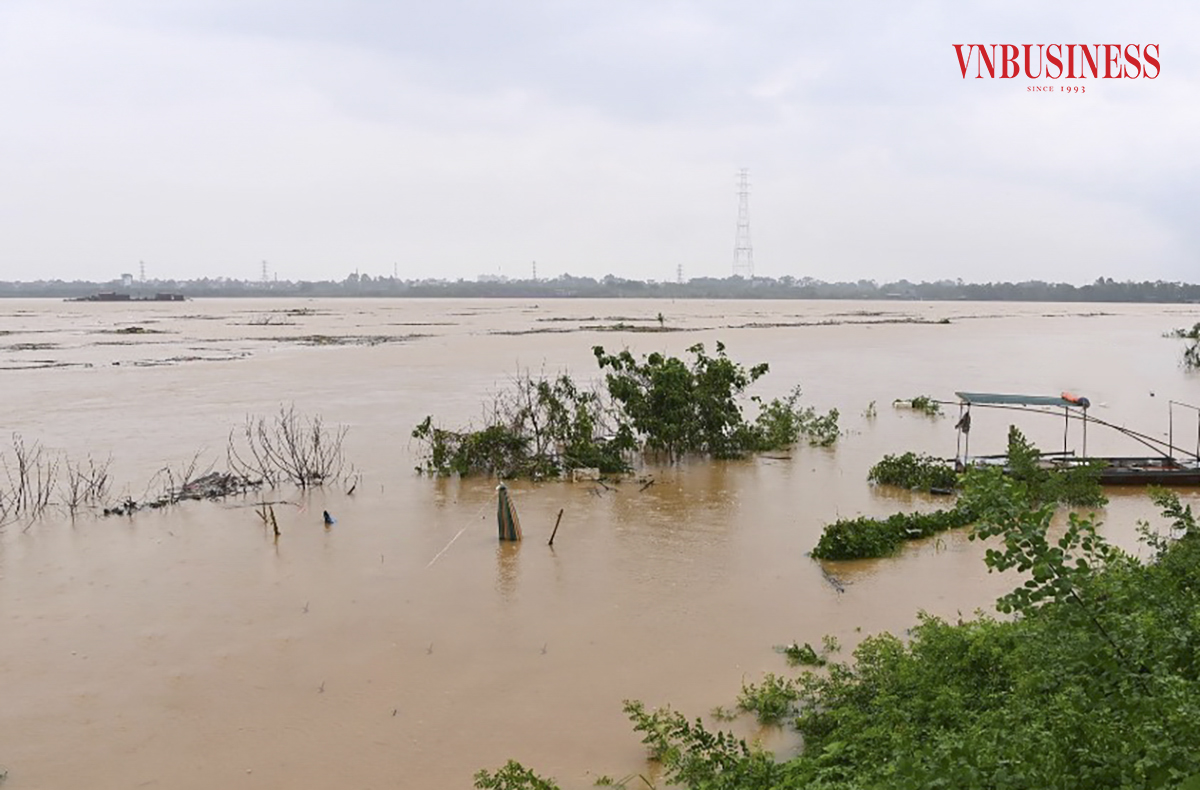 Do ảnh hưởng của cơn bão số 3 gây mưa lớn kéo dài trong nhiều ngày ở các tỉnh phía Bắc, cộng thêm các hồ thủy điện xả lũ khiến nước sông Hồng những ngày này mênh mông biển nước.