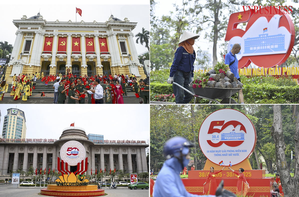 Những ngày cuối tháng 4, Hà Nội khoác lên mình tấm áo mới rực rỡ sắc đỏ của cờ hoa, băng rôn, khẩu hiệu, tranh cổ động, chào mừng kỷ niệm 50 năm Ngày Giải phóng miền Nam, thống nhất đất nước (30/4/1975-30/4/2025), non sông liền một dải.