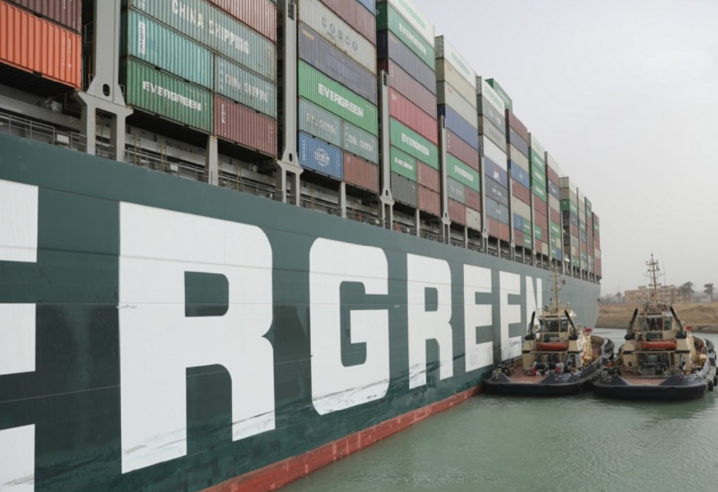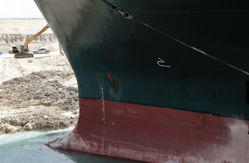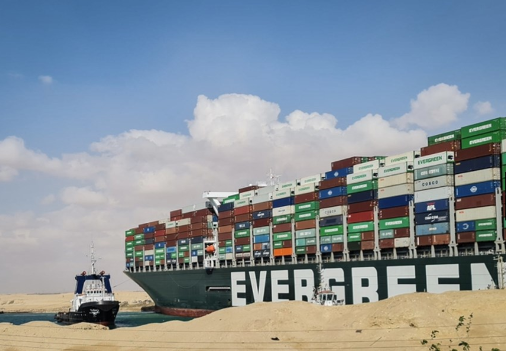 Ever Given là tàu chở hàng khổng lồ thế hệ mới nhất, dài hơn 400 mét, tương đương với bốn sân bóng đá, rộng hơn 60 mét, bị gió mạnh cuốn đang mắc cạn tại Kênh đào Suez, rất khó khăn để khởi động lại.