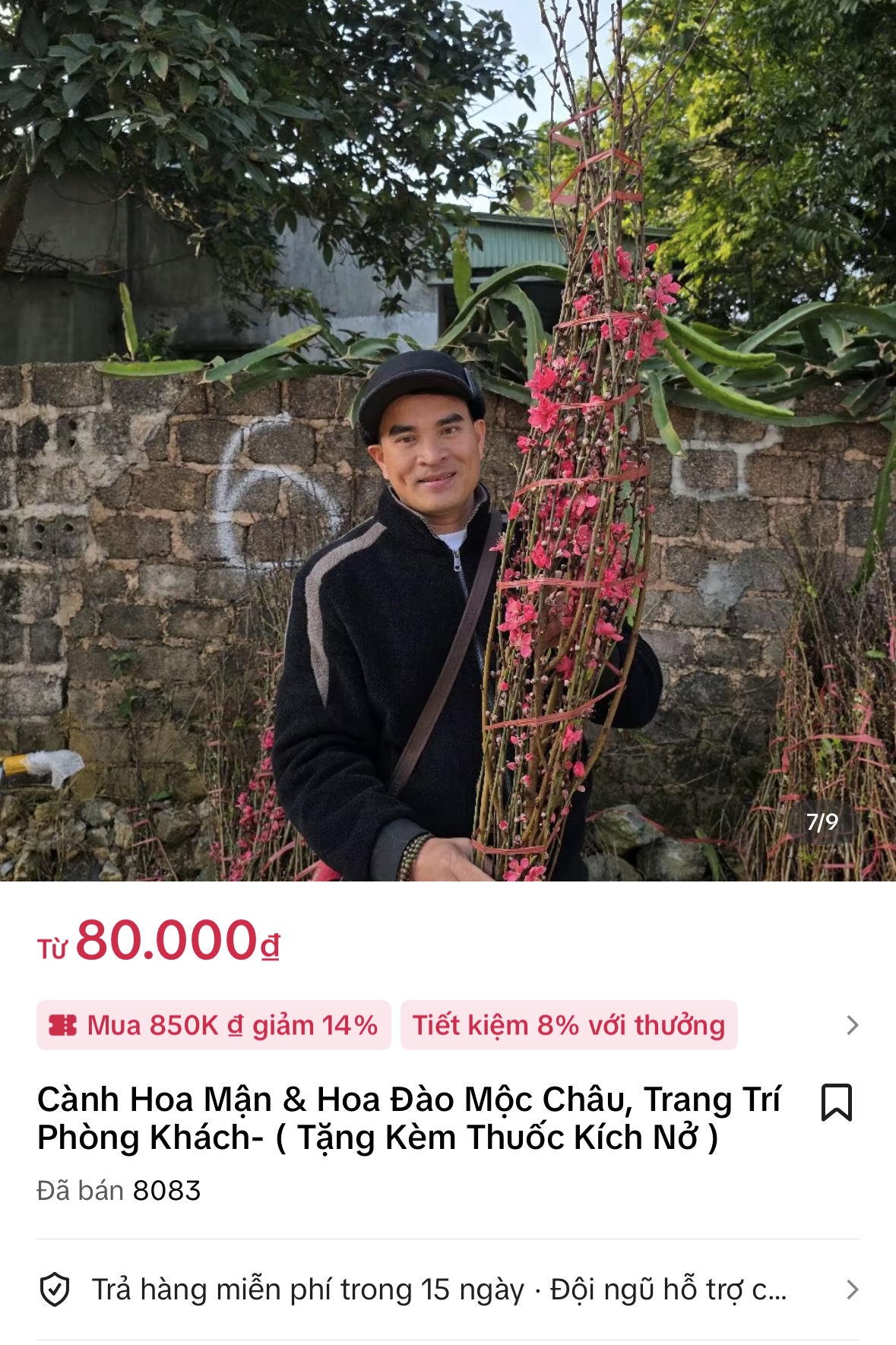 Một chiều tháng 11 âm lịch, Hà (30 tuổi, Hà Nội) đi làm về, bó hoa đào rừng cô đặt mua sau khi xem livestream trên TikTok Shop đã nằm ngay ngắn trên bàn.