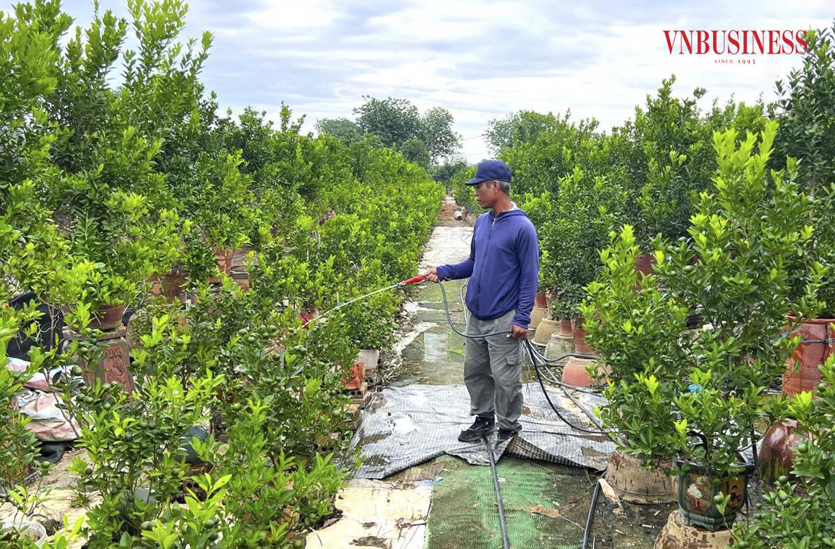 Tại làng quất cảnh Tứ Liên, người dân cũng đang nỗ lực phục hồi, chăm sóc các chậu quất để phục vụ Tết Nguyên đán 2025.
