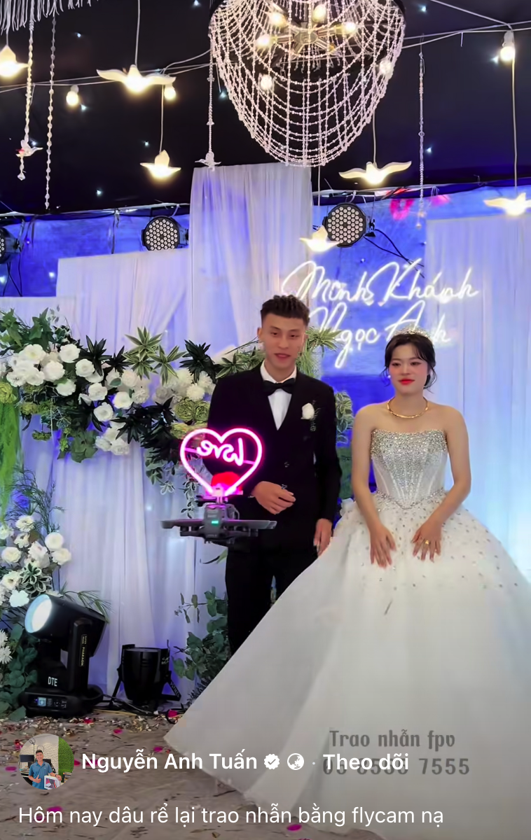 Cùng thời điểm đó, trên mạng xã hội lan truyền đoạn video ghi lại hình ảnh một chiếc UAV được trang trí hình trái tim, mang nhẫn cưới bay lượn quanh hội trường rồi tiến lên sân khấu trong một lễ cưới. Chú rể nhanh chóng nhận lấy chiếc nhẫn từ thiết bị bay không người lái và trao cho cô dâu trong sự chúc phúc của gia đình và bạn bè. Video nhanh chóng thu hút hơn một triệu lượt xem cùng nhiều bình luận khen ngợi sự sáng tạo, hiện đại, “đúng chất thời đại công nghệ”.