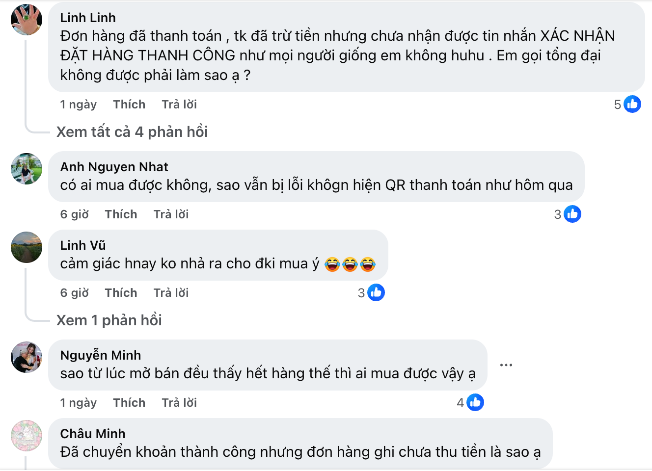Tuy nhiên, hình thức mua vàng trực tuyến trong dịp cao điểm ngày vía Thần Tài này cũng không hề “nhẹ nhàng”. Nhiều người phản ánh gặp tình trạng hệ thống quá tải, thường xuyên báo hết hàng, không hiển thị mã QR thanh toán, không nhận được tin nhắn xác nhận giao dịch dù tài khoản đã bị trừ tiền…