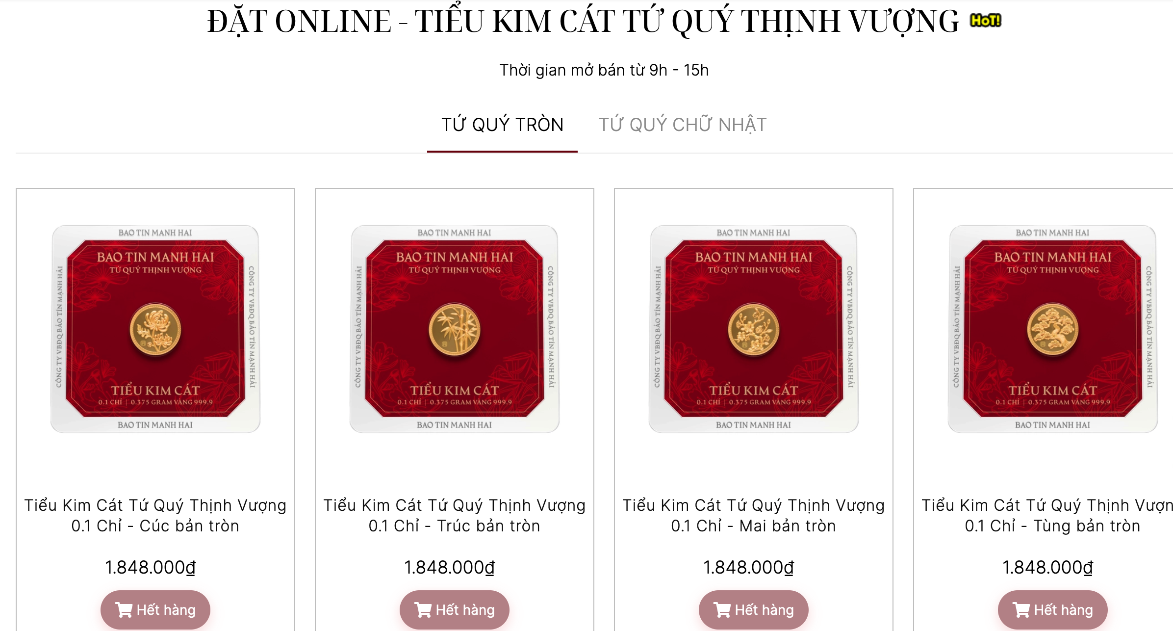 Một số doanh nghiệp thậm chí phải điều chỉnh phương thức bán hàng. Như Bảo tín Mạnh Hải đã dừng bán trực tiếp tại cửa hàng với sản phẩm Tứ quý thịnh vượng 0,1 chỉ. Sản phẩm này chỉ mở bán online với số lượng và thời gian giới hạn mỗi ngày. Khách hàng thanh toán trước qua hình thức chuyển khoản và nhận hàng tại cửa hàng sau 4 ngày đặt mua.