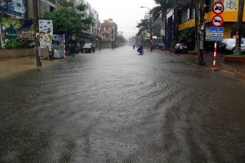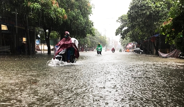 Đường Đặng Thái Thân ở Tp.Vinh gần như chìm trong biển nước.