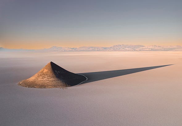 Chú thích: 'El Cono Arita', một sự hình thành địa chất ngoạn mục nơi sự xói mòn đã tạo thành một hình nón gần như hoàn hảo dường như bị lạc trong sa mạc rộng lớn của Salar de Arizaro. Sử dụng máy bay không người lái, tác giả có thể chụp được bóng tráng lệ của Arita vào buổi tối đẹp trời không mây này.