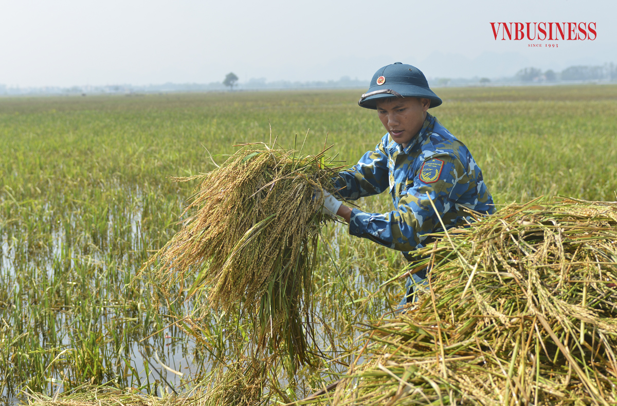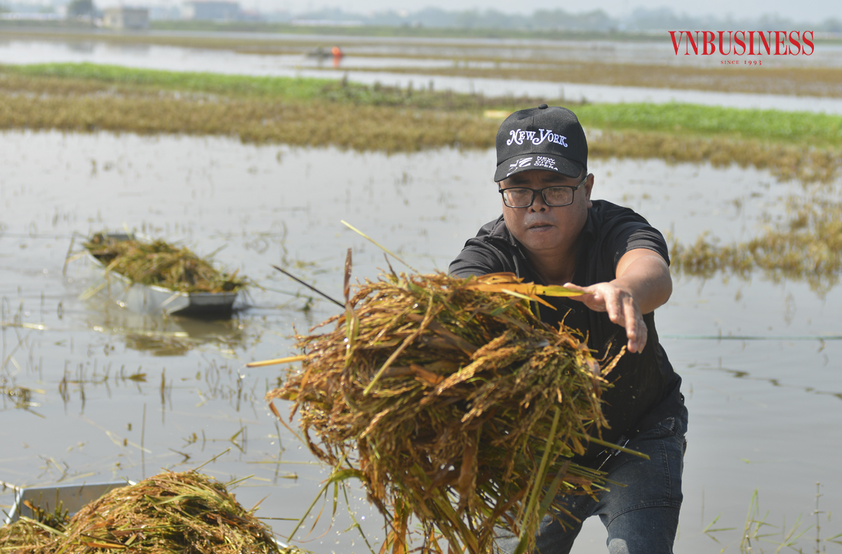 3 Ông Bùi Tiến Hùng (xã Mỹ Lương, Chương Mỹ, Hà Nội) cho biết, nhà ông có gần 1 mẫu ruộng thì có đến hơn 8 sào bị ngập nước. "Nước ngập trắng đồng khiến nhà tôi phải gặt lúa non để vớt vát được chút nào hay chút đó, nước rút dần nên phải thu hoạch, nếu để thêm sẽ mất trắng", ông Tiến chia sẻ.