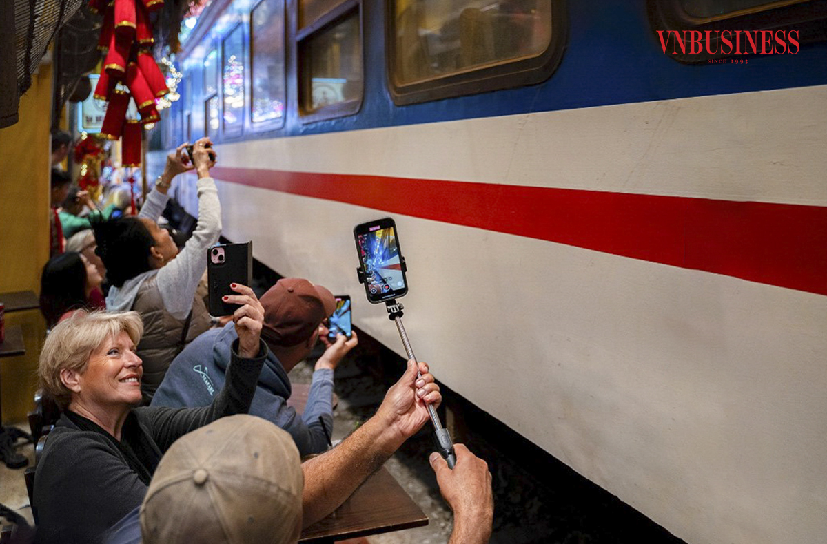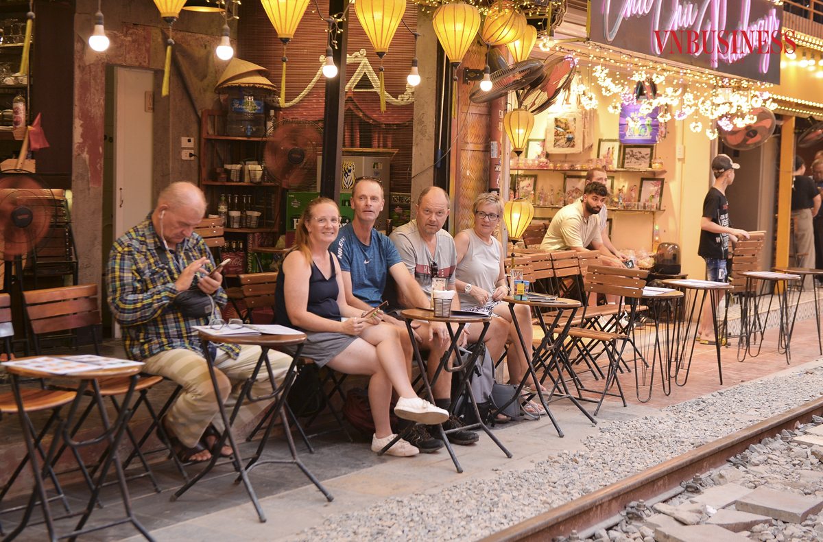 Theo ghi nhận của VnBusiness, dọc 2 bên hành lang đường sắt, các quán cà phê luôn đông khách vào bất cứ thời điểm nào trong ngày, đặc biệt là du khách nước ngoài đến tham quan và tận hưởng không gian độc đáo nơi đây.