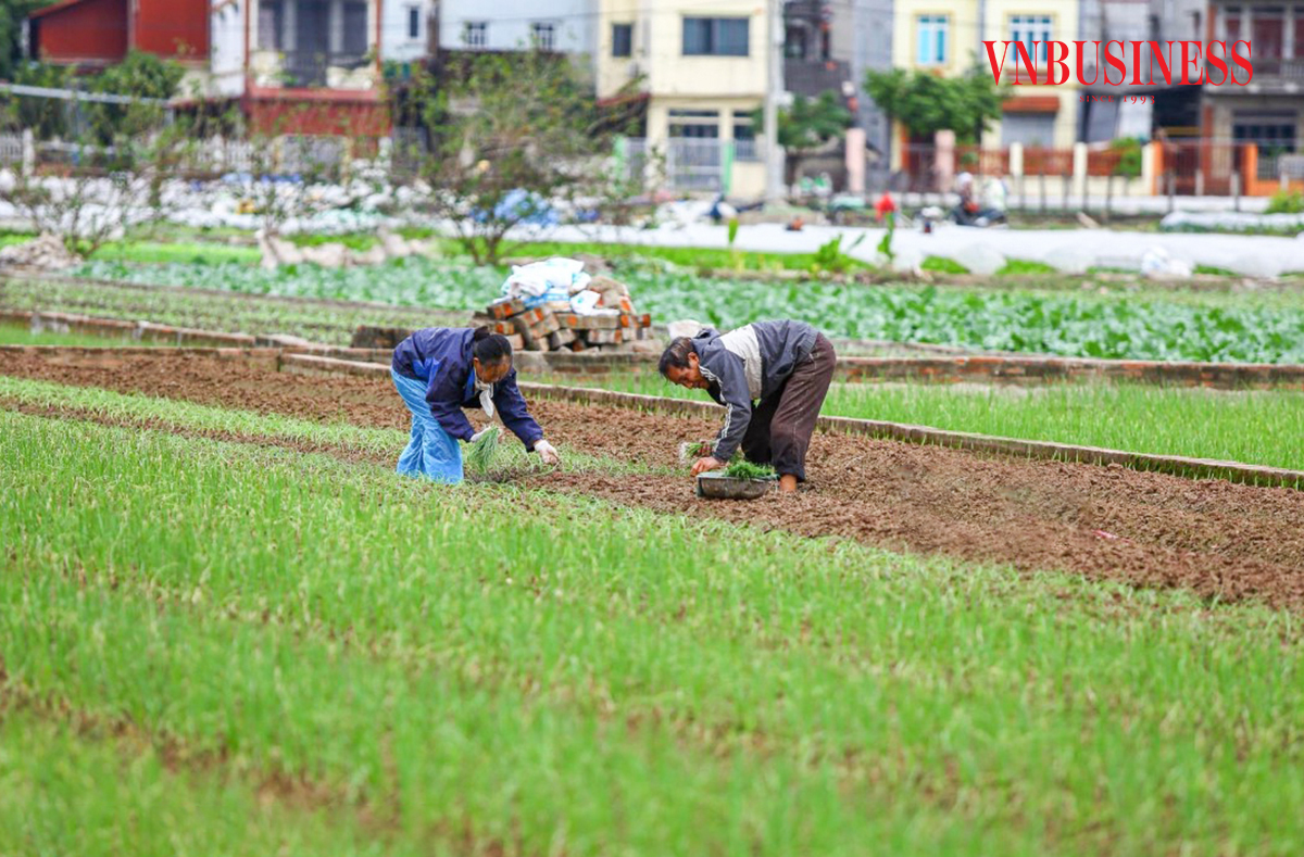 Từ sáng sớm, vợ chồng ông Cảnh đã có mặt ngoài ruộng để trồng mới những luống hành ngay sau khi thu hoạch.