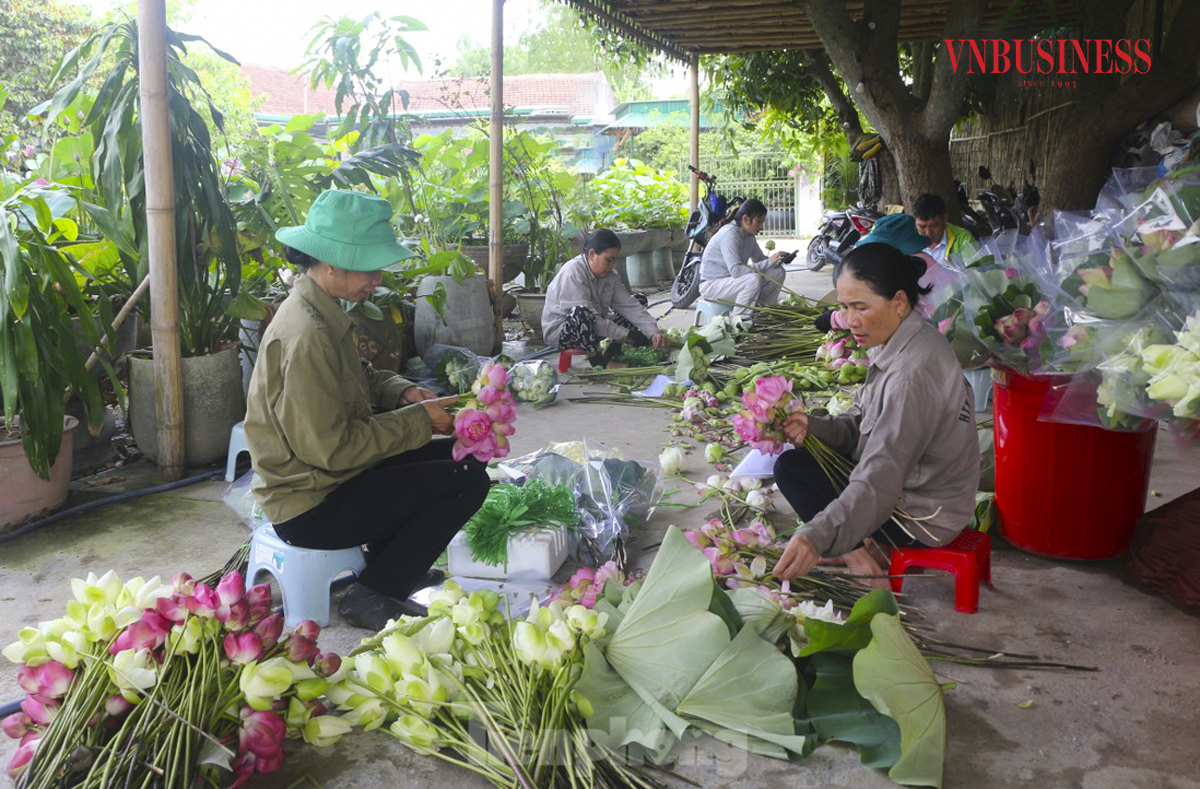 Bà Nguyễn Thị Chung, thành viên HTX Sen quê Bác cho biết, trước đây, gia đình có hơn 5 sào trồng lúa nhưng hiệu quả kinh tế không cao. Xã có chủ trương chuyển đổi sang trồng sen, nhờ được tập huấn kỹ thuật, chăm sóc đúng quy trình nên đã cho thu nhập ổn định.