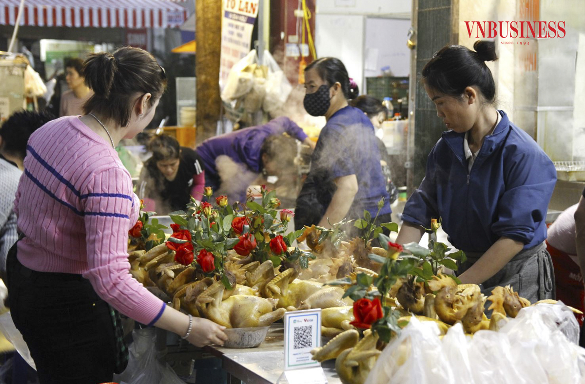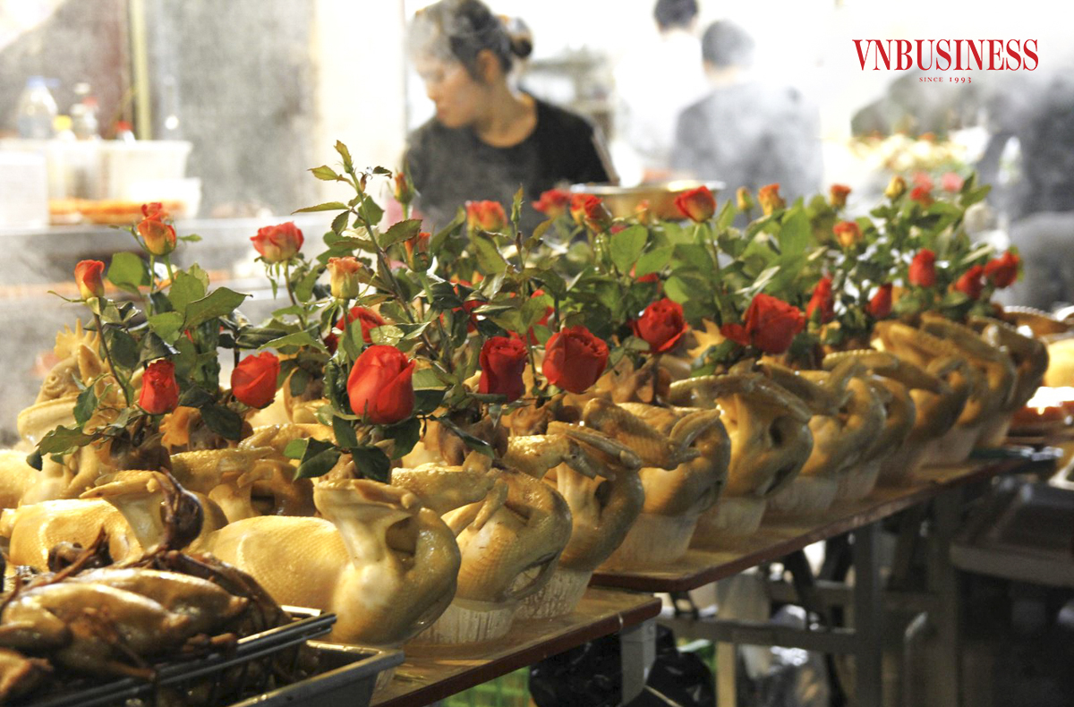 Ngoài những món ăn truyền thống ngày Tết, mặt hàng không thể thiếu là gà cánh tiên ngậm hoa hồng, mặt hàng này vốn nổi tiếng tại đây và được rất nhiều người ưa chuộng đặt mua.