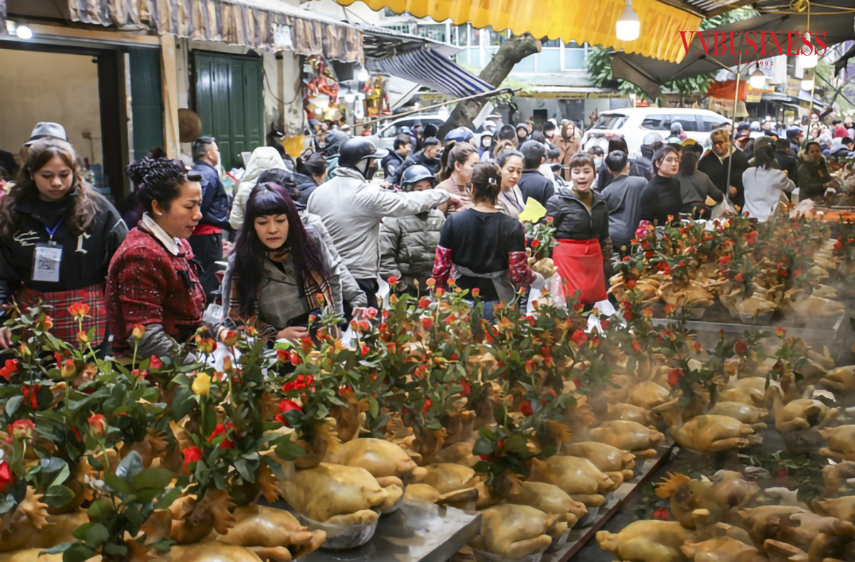 Tết ông Công ông Táo: Gà cánh tiên ngậm hoa hồng 'chợ nhà giàu' Hà Nội bán đắt như tôm tươi