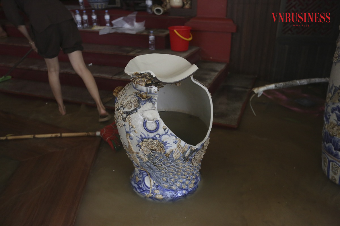 Hộ kinh doanh Tuấn Thủy cho biết, thiệt hại hơn nửa tỷ đồng sau trận ngập. "Nước lũ vào, dâng nhanh, không chạy kịp khiến các sản phẩm va đập vào nhau, nhiều chiếc lục bình cỡ lớn có giá hàng trăm triệu chưa kịp di chuyển thì đã đổ vỡ. Thiệt hại cửa hàng ước tính khoảng 600 triệu đồng", người này chia sẻ.